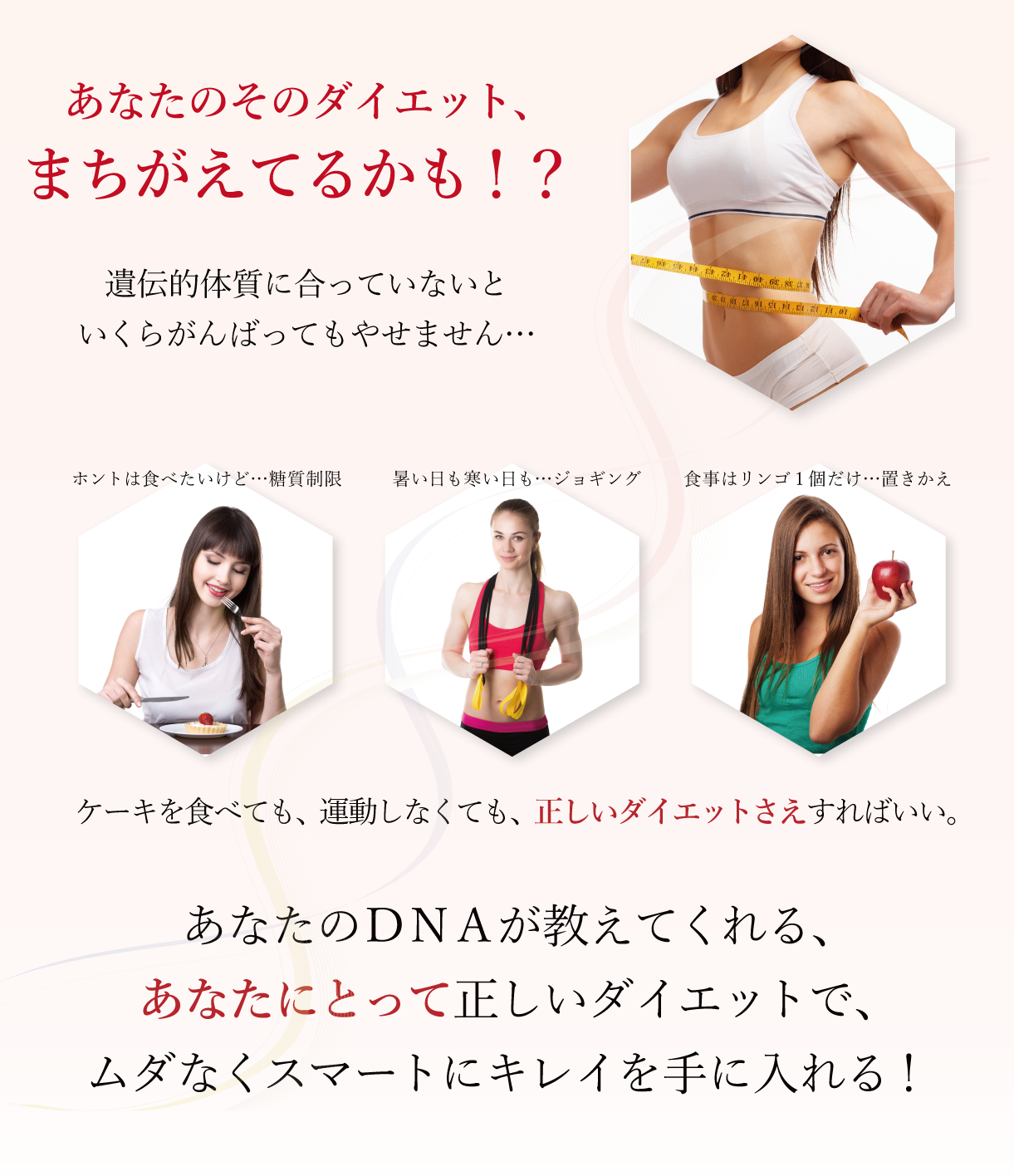 DNA検査の結果からも「DNA上はもう痩せるからです」という確信があります。科学的根拠に基づいた自信が、目標達成への原動力になります。